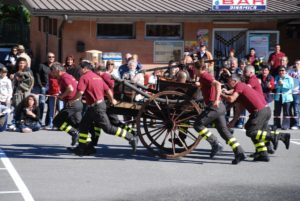 Pompa a mano a stantuffi Brevetto 23347 di Pietro Berzia di Torino N° di serie 489, fissata su carro a ruote, munito di un timone per il traino manuale o con due sbarre fissate al carro per il traino (cavallo o mulo) per lunghi tragitti. Venne acquistata dal Municipio di Venaus il 17 settembre 1893 anno di fondazione della Squadra Pompieri di Venaus (articolo del giornale “L’indipendente” del 24 settembre1893) con a capo il parroco Don Celestino Agnes. Per la messa in funzione la pompa richiedeva l’intervento minimo di almeno sei pompieri, ciascuno con la sua specifica mansione. Un caposquadra dirigeva le operazioni, la pompa veniva scarrellata dal carro e possibilmente posizionata nelle vicinanze di una fonte di acqua (fontana o rio) e si collegava il tubo d’aspirazione. Se la fonte di approvvigionamento era lontana si procedeva al riempimento della vasca con i secchi di tela cerata facendo il passamano tra i volontari presenti sull’incendio. Quattro pompieri si disponevano due per lato per azionare il doppio braccio della pompa per aspirare e pompare l’acqua, altri pompieri srotolavano e innestavano tra loro i tubi-manichetta di tela cerata in quantità sufficiente per raggiungere il luogo dell’incendio, all’estremità della condotta si innestava la lancia metallica per poter dirigere il getto dell’acqua alla base delle fiamme. La lampada alimentata a petrolio ubicata al centro e in alto del corpo della pompa, permetteva di far luce nelle concitate ore notturne. L’ultimo suo impiego nella mansione di pompa antincendio è stato il 3 GENNAIO 1983 durante il devastante incendio di Venaus in borgata Piazza. Il 5 ottobre 2008 ha partecipato al campionato Provinciale delle pompe manuali antiche svoltasi a Borgone di Susa dove ha trionfato vincendo il primo premio con la squadra 91 dei Vigili del Fuoco effettivi di Susa raggiungendo con il getto dell’acqua la distanza di 27 metri. L’efficienza è dovuta alla costante manutenzione tramandata negli anni con  “LA SECONDA”, ritrovo mensile di squadra.