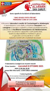 Con l’arrivo dell’autunno sono ripartite le attività, sempre pensate per accompagnare sia i malati che i caregiver lungo il percorso della malattia. In ottobre sono stati avviati due nuovi laboratori: il Gruppo di Psicodramma, condotto dallo psicologo Paolo Sapelli, offre ai pazienti uno spazio in cui esprimere emozioni complesse attraverso il teatro, mentre il laboratorio condotto dalla dottoressa Daniela Dallorto “Uno spazio tutto per me – Prendersi cura di chi cura” è un percorso di arteterapia rivolto ai caregiver, basato sulla tecnica del Caviardage, in cui le parole e le immagini diventano strumenti di riflessione, sollievo e condivisione.