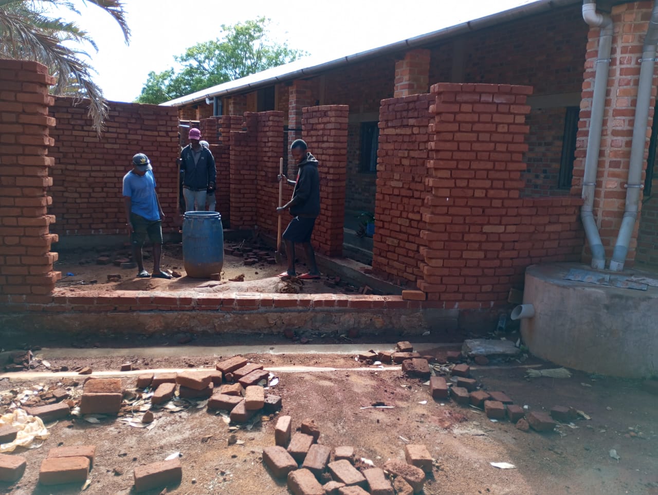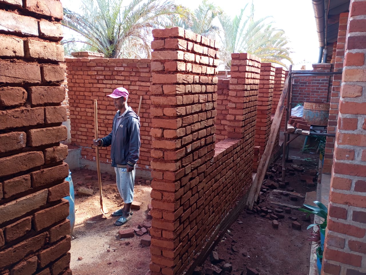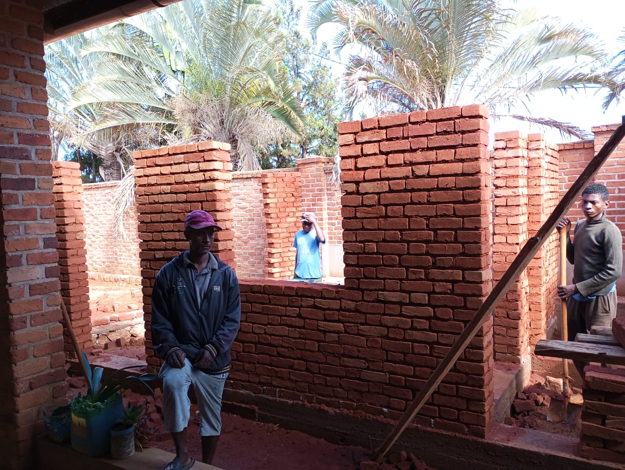 7 dicembre 2025. Continuano, con tempi e possibilità malgasce ma senza sosta, i lavori della costruzione sanitaria destinata al poliambulatorio. In queste immagini, che ci giungono dal cortile del Dispensario medico, vediamo il gruppo di operai coordinati dal responsabile del cantiere Tahaina (noi lo chiamiamo Tania).