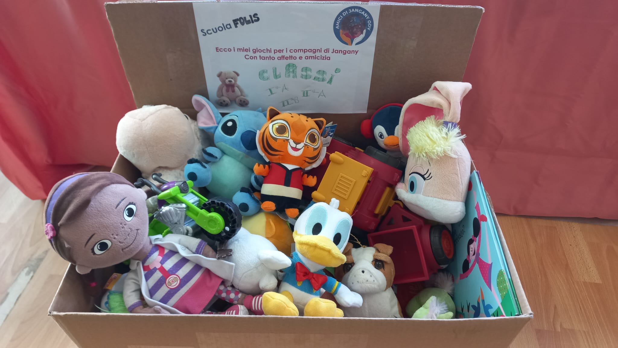 - i bambini delle classi I e II della scuola Folis e Podio di Pino Torinese per i giocattoli (tra cui quelli a cui sono affezionati) perchè anche i bambini della scuola materna e primaria di Jangany possano averne;