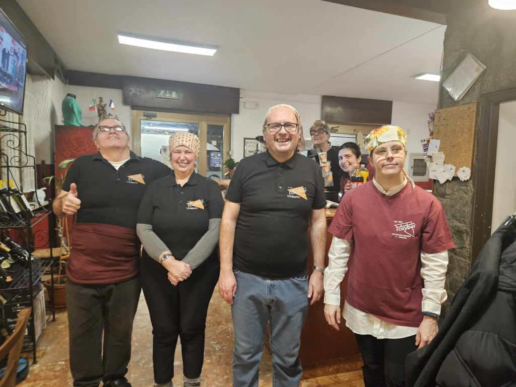 in cucina, Andrea ha ricevuto i complimenti del cuoco e, in sala, i “camerieri” sono stati impeccabili! Con le loro divise e cuffie hanno servito con il sorriso, raccogliendo con disinvoltura anche le ordinazioni extra…
