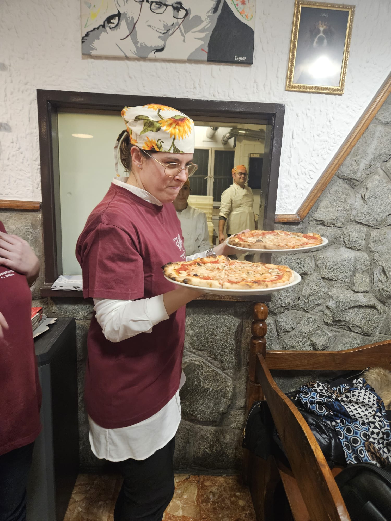 in cucina, Andrea ha ricevuto i complimenti del cuoco e, in sala, i “camerieri” sono stati impeccabili! Con le loro divise e cuffie hanno servito con il sorriso, raccogliendo con disinvoltura anche le ordinazioni extra…