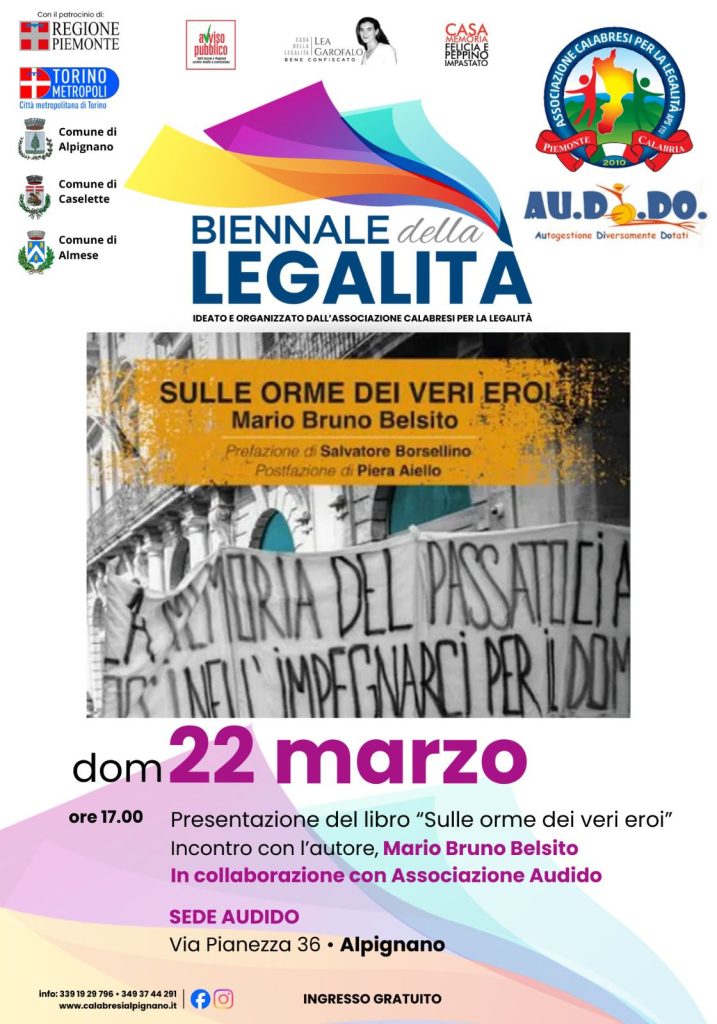 Domenica 22 marzo, Mario Bruno Belsito ha presentato il suo libro SULLE ORME DEI VERI EROI, nella sede AU.DI.DO., evento organizzato nell’ambito del progetto Svoltiamo Pagina…siamo fuori! dall’Associazione Calabresi per la Legalità. Belsito, che insegna discipline giuridiche ed economiche presso il Liceo delle Scienze umane Fabrizio De Andrè di Brescia, è ideatore e organizzatore di progetti educativi per la diffusione della cultura dell’antimafia sociale, soprattutto negli istituti superiori di tutta Italia. Fonda l’Associazione Rete antimafia della provincia di Brescia di cui è l’attuale Presidente. Il suo libro è un viaggio nella memoria dei veri Eroi dell’antimafia, attraverso le storie vissute dall’autore lungo il suo cammino di lotta a tutte le mafie.