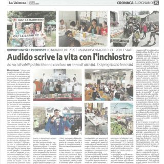 Testata: La Valsusa Data: 3 luglio 2025 Autore: Carmen Taglietto Opportunità e proposte – Le iniziative del 2025 e un ampio ventaglio di idee per l’estate AU.DI.DO. scrive la vita con l’inchiostro 80...