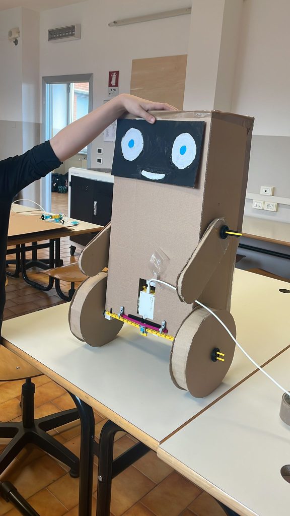 Si lavora con componenti elettronici, cartone, fili, motori, LED e servomotori.
