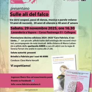 Vi aspettiamo alla premiazione decima edizione 2024 – 2025 Sabato, 29 novembre 2025, ore 16,30 Lavanderia a Vapore – Corso Pastrengo 51- Collegno (TO) SULLE ALI DEL FALCO tra versi sospesi, passi di danza,...