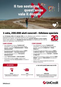 Quanto più numerosi saranno i voti, e quanto più consistenti saranno i fondi raccolti con le Vostre donazioni, maggiore sarà la possibilità di accedere ad una parte dei contributi messi a disposizione da UniCredit.