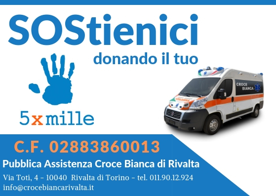 La legge finanziaria 2007 prevede la possibilità di destinare il 5×1000 delle Tue imposte alla Croce Bianca di Rivalta, in quanto siamo un’Associazione senza fini di lucro, iscritta all’Albo dell’Agenzia delle Entrate.
