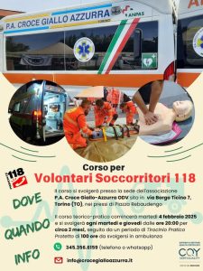 La Croce Giallo-Azzurra di Torino apre le iscrizioni alla 5ª edizione del Corso per Soccorritori d’Emergenza!