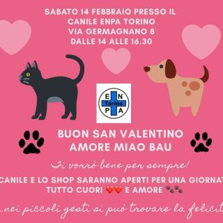 Per la GIORNATA dedicata all’AMORE : SABATO 14 FEBBRAIO SAN VALENTINO 💝 : saremo aperti dalle 14 alle 16.30 per una giornata a tutto cuori e amore per i nostri ospiti. Puoi contribuire se...