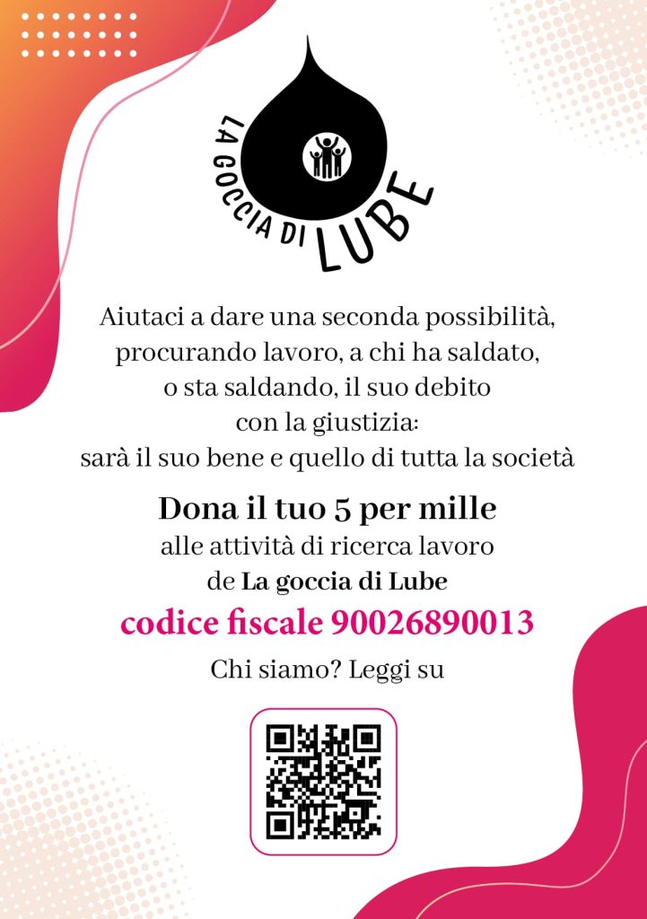L’associazione La goccia di Lube opera dal 2018 accanto a chi vuole ricominciare nella propria vita con serietà, lealtà e impegno dopo aver vissuto l’esperienza – dura, faticosa, spesso umiliante – della restrizione della libertà: prima in carcere poi al di fuori, con le cosiddette misure alternative. Oggi, sovente, anche senza passare attraverso il carcere, ma subito alle misure alternative. Non ci occupiamo, dunque, di carcere o di carcerati, ma di chi sta scontando la pena fuori. Gente che vive attorno a noi, nei nostri condomini, che percorre – quando è a loro permesso – le nostre stesse strade, i negozi, le scuole dei figli… Il nostro obiettivo è realizzare progetti per favorire il reintegro di queste persone nel mondo del lavoro. Noi chiamiamo questa attività “azione caritativa”. L’obiettivo ha preso a cavallo tra 2024 e 2025 una forma precisa, si chiama Progetto Impresa Accogliente che si è chiuso, per la sua prima annualità, il 31 maggio 2025. In questo video sono raccontati che cosa è La goccia di Lube, che cosa è il Progetto impresa Accogliente e quali sono stati i risultati ottenuti.