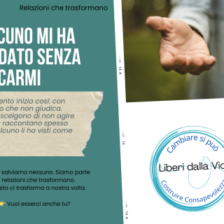La campagna per la ricerca dei volontari e volontarie è divisa in quattro argomenti: Relazioni che trasformano, Presenza che sostiene, Comunià in trasformazione e Responsabilità come scelta. Argomento n.1 Relazioni che trasformano Il cambiamento...