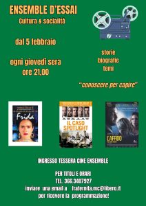 CINECLUB ENESEMBLE OGNI DOMENCIA POMERIGGIO 3 Febbraio 2026 di FRATERNITA' MARIA CONSOLATRICE · Published 3 Febbraio 2026