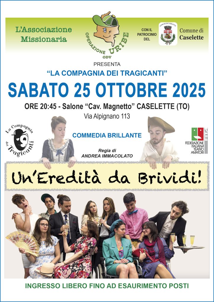 COMMEDIA TEATRALE – Sabato 25 ottobre 2025 Pubblicato 2 Settembre 2025 · Aggiornato 1 Settembre 2025 Tutti a Teatro a Caselette! Spettacolo “benefico” in collaborazione con “La Compagnia dei Tragicanti”, gruppo teatrale di Val della Torre.